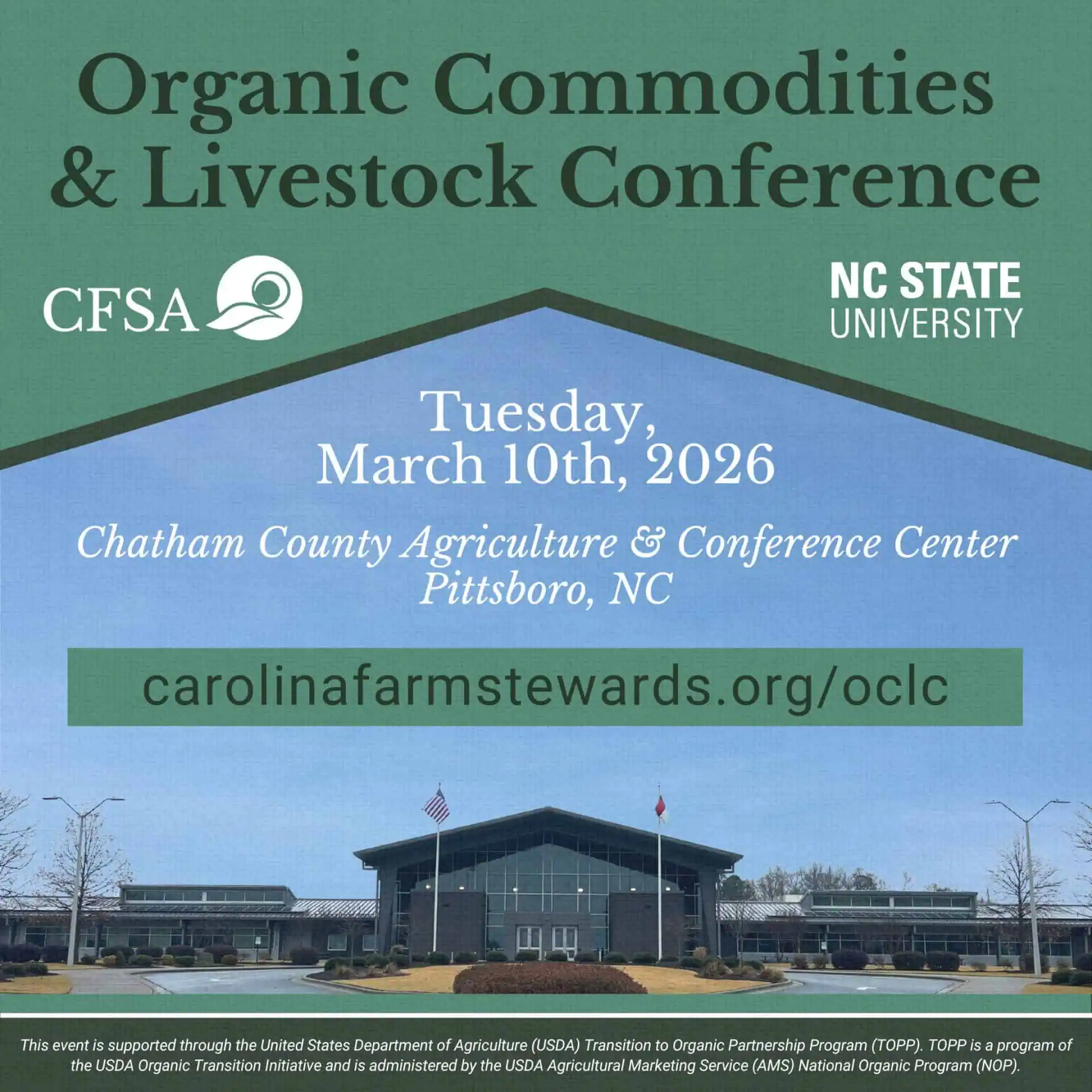 - Website: https://carolinafarmstewards.org/organic-commodities-livestock-conference/