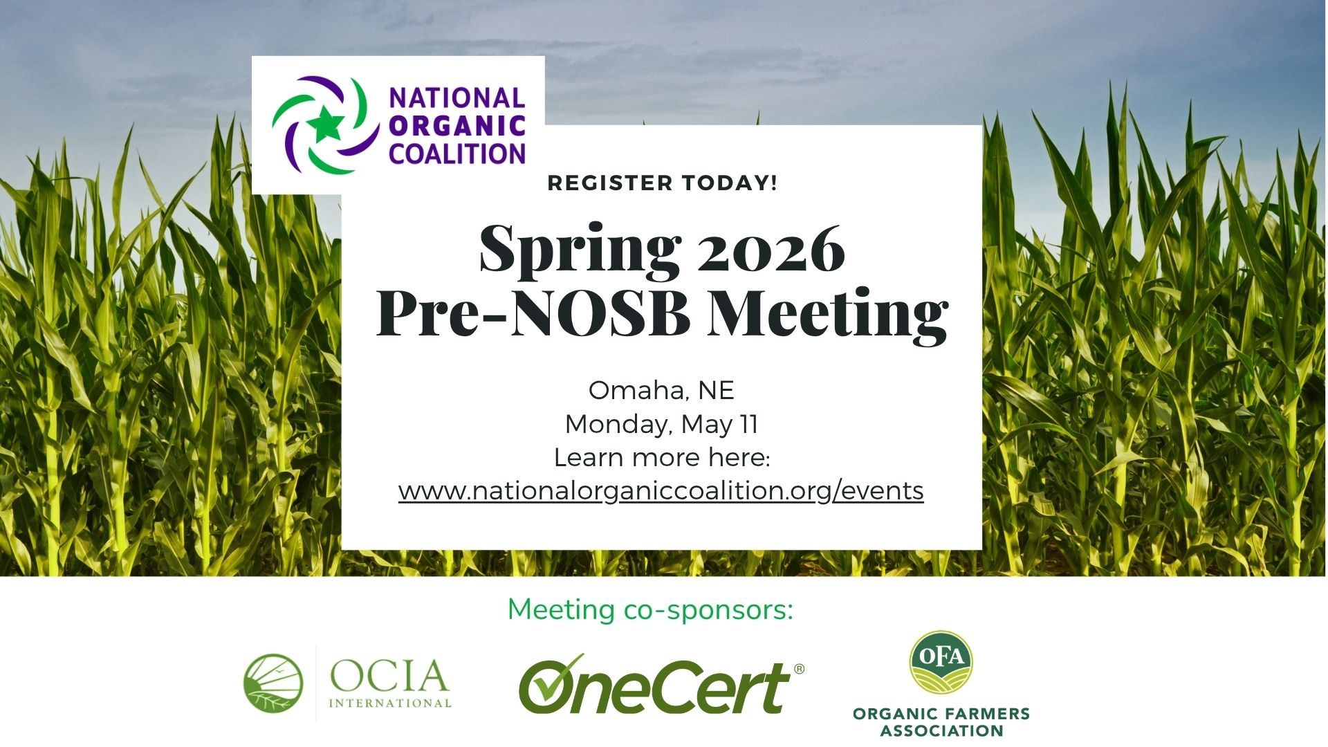 The National Organic Coalition (NOC) is proud to continue bringing the organic community together for timely, solution-oriented conversations in connection with National Organic Standards Board (NOSB) meetings. This spring’s meeting in Omaha will provide a federal policy update, including the latest on the Farm Bill, USDA reorganization and National Organic Program (NOP) staffing, and NOC’s advocacy to advance organic with Congress and USDA. The event will take place at KANEKO, just .2 miles from the NOSB meeting location.
