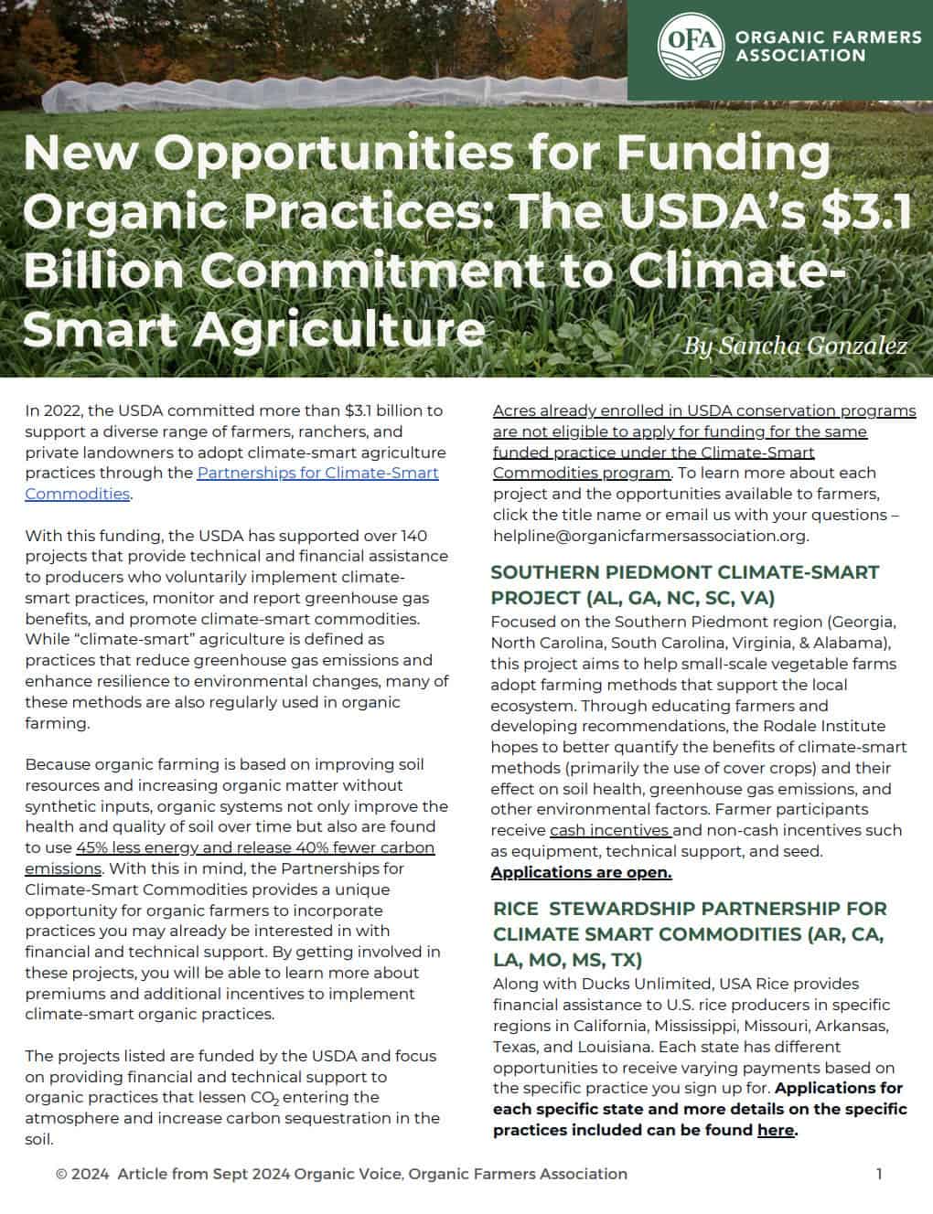Organic Farmers Association 119th Congress Farm Bill Tracker