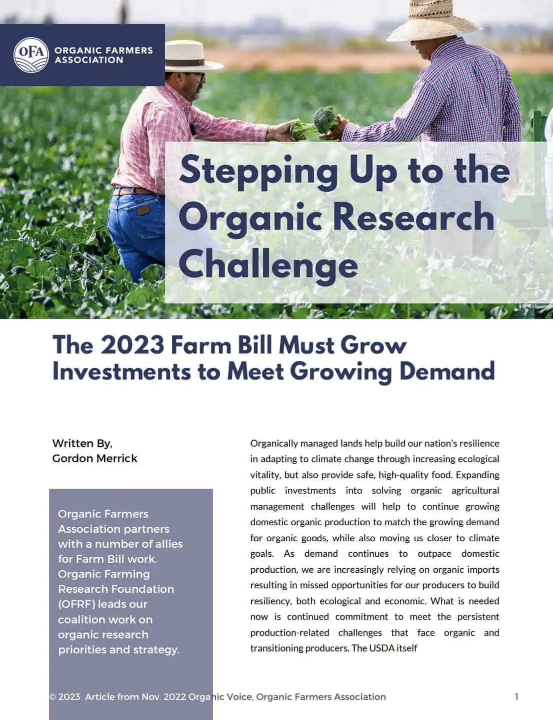 Organic Farmers Association 119th Congress Farm Bill Tracker